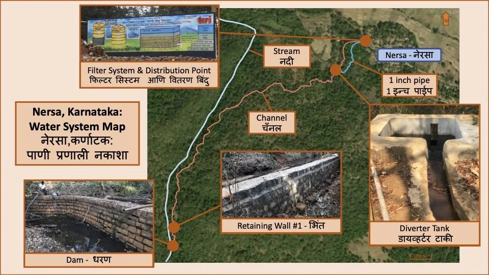In 2022 construction was carried out to ensure secure water access to the village and filter. This map shows the updated system.