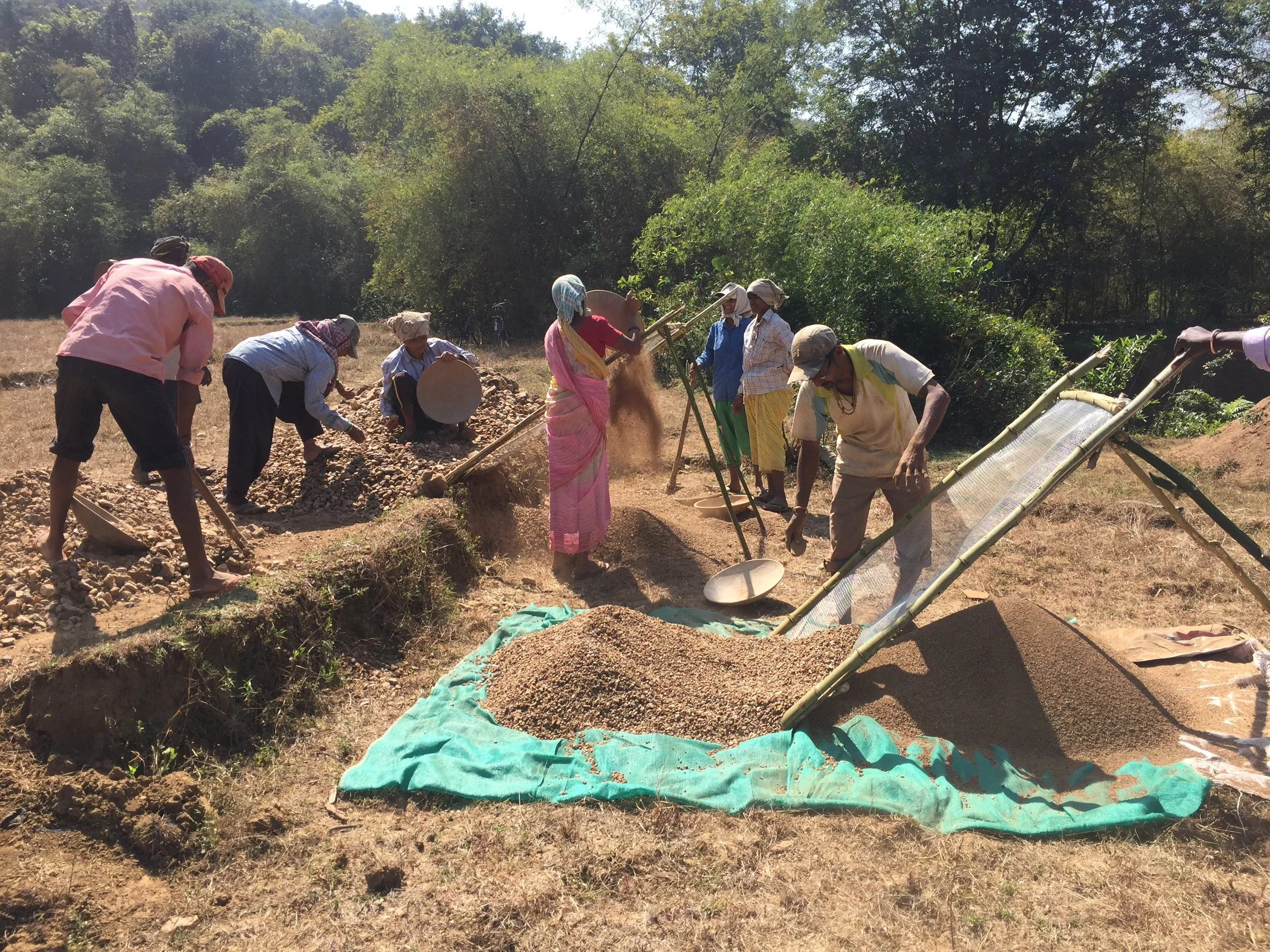 Our team surveyed local alluvial deposits and found material suitable for the filter matrix. Sand and gravel was then sieved into appropriate sizes and washed before being loaded into the filter.
